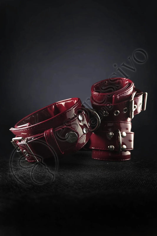 Bondage-Manschetten aus rotem PVC - Handgelenk- und Knöchel-BDSM-Fesseln